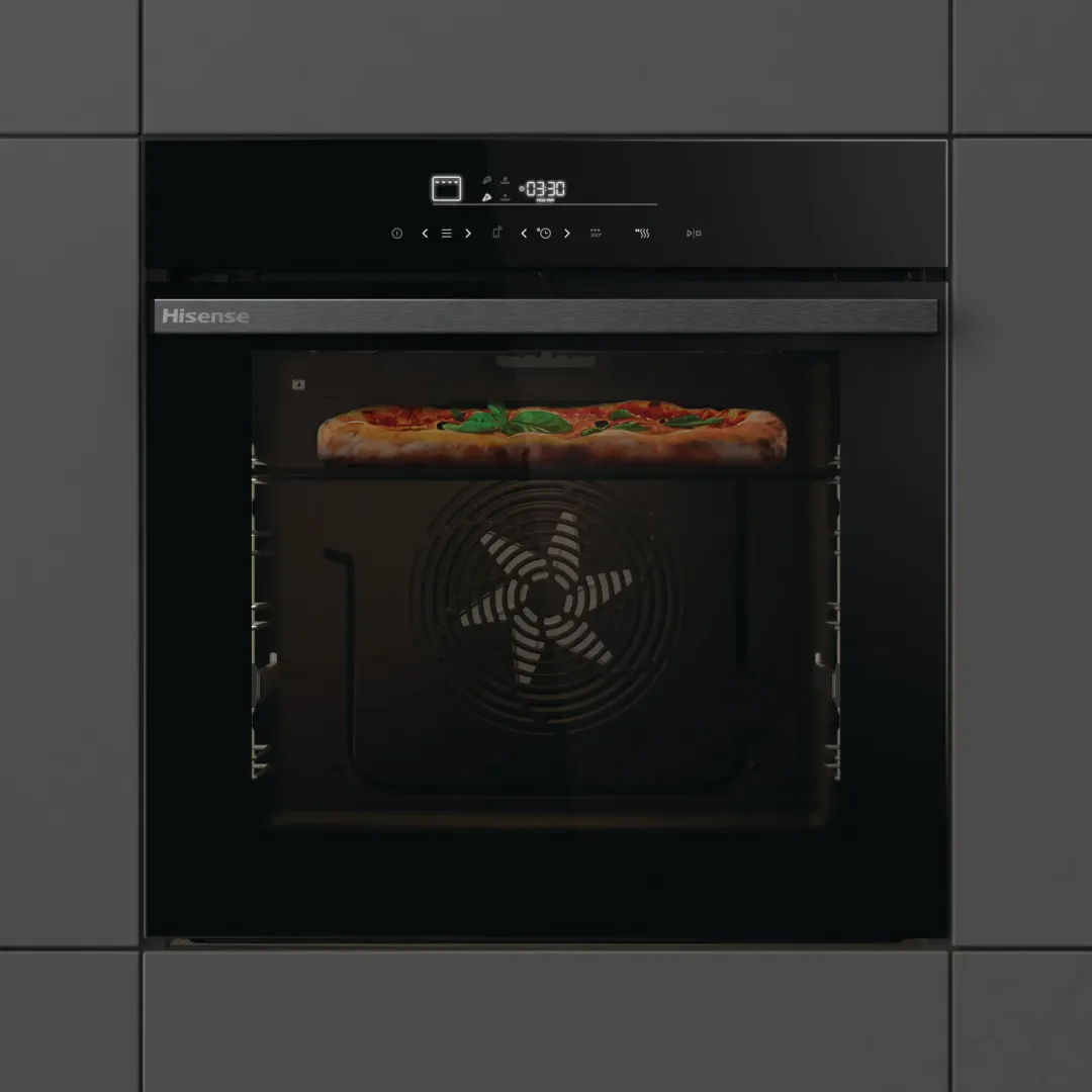 Inteligentná rúra Hisense HO66F PizzaChef má jedinečný program Pizza Mode PRO, ktorý pri 350 °C upečie najlepšiu chrumkavú pizzu len za 3 minúty a 30 sekúnd – to je o 40 % rýchlejšie ako zvládnu iné rúry s funkciou Pizza. Rúra s veľkorysým objemom 77 l má patentovaný klenutý tvar pre dokonale rovnomerné prúdenie vzduchu. Ponúka 22 automatických programov, zdravé teplovzdušné vyprážanie aj profesionálne viacfázové pečenie. O dokonalú čistotu sa postará najúčinnejšie pyrolitické čistenie. Súčasťou príslušenstva je tiež špeciálny plech a lopatka na pizzu. Rúra stojí 719 EUR.